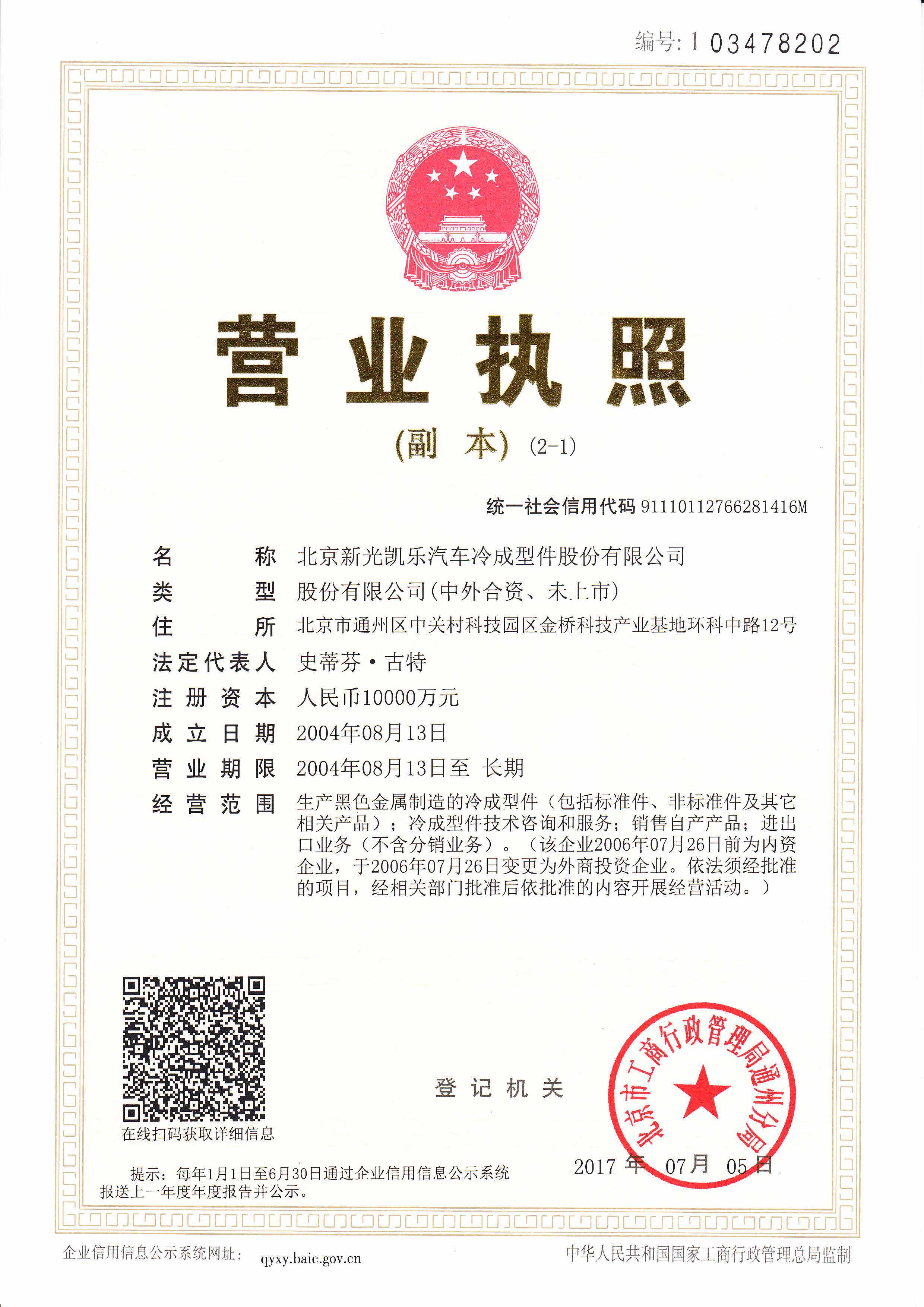 北京新光凱樂(Singu Keller)汽車?yán)涑尚图煞萦邢薰?br> 是由邢臺鋼鐵有限責(zé)任公司和德國 A&E KELLER公司合資組建, 開發(fā)生產(chǎn)汽車?yán)涑尚图捌渌芎谏饘僦瞥善贰?